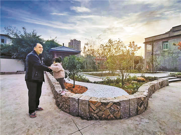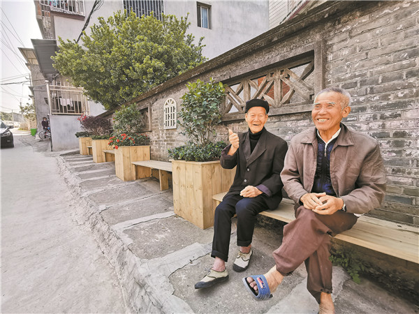 長樂區首占鎮黃 李村村民在新建的 休閑空間休憩