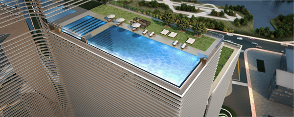 尤其值得一提的是,100米處的無邊際高空游泳池。在一池碧水中遠眺城區美景,這是整座大廈設計的點晴之筆,在南沙現有建築中罕見,與全球商業精英的氣質遙相呼應,構成了一道具有國際風範的風景線。