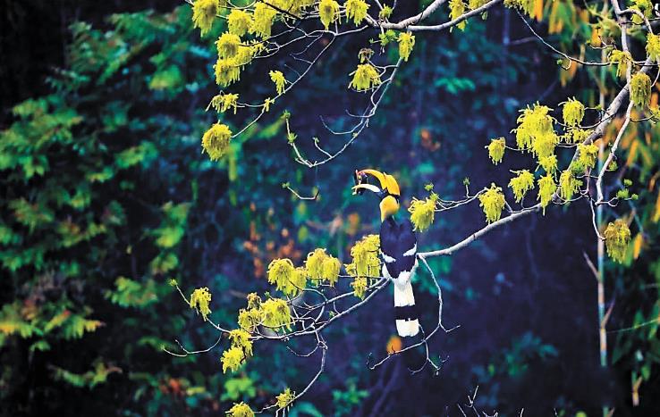盈江縣擁有豐富的自然資源,有記錄的鳥類品種數量大約佔中國一半。在石梯村,相對原始的自然環境成為了鳥類的「天堂」,雙角犀鳥、灰孔雀雉、紅腿小隼……這些珍貴鳥種都能在石梯觀測到。