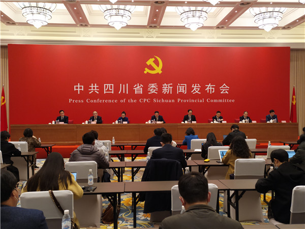 四川省委副秘書長、省委政研室主任唐文金,省發展改革委黨組書記、主任鄭備,經濟和信息化廳黨組書記、廳長朱家德,科技廳黨組書記、廳長劉東,商務廳黨組書記、廳長劉欣,省委宣傳部副部長、文化和旅遊廳黨組書記、廳長戴允康參與新聞發佈會並回答記者提問,從不同側面解讀全會精神。(記者 付莉莉)