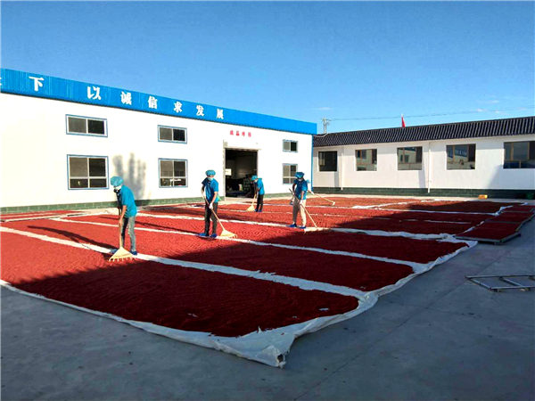工人在扶貧車間晾曬枸杞 劉珍珍攝