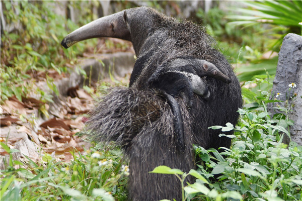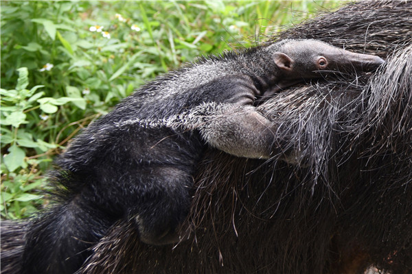 據了解,在深圳野生動物園裏,與其他動物相比,大食蟻獸繁殖的成功率要低得多。產後的大食蟻獸和初生的幼崽對環境要求極為苛刻,稍有照顧不周,幼崽和母獸都容易出現意外。幼崽出生後就會被母獸馱在背上,為了避免人為因素干擾而影響幼崽的成長,該園飼養員除了餵食和獸舍清理等工作外,一般不會接觸幼崽。因此,目前還不確定幼崽的性別。為安全起見,平時園方還會通過監控24小時觀察幼崽的成長狀況。
