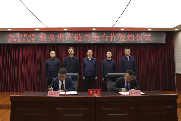 12月9日,黑龍江省克山縣人民政府與益海嘉里集團簽署了《糧食供應鏈再造合作協議》、克山縣禾源糧食貿易集團與益海嘉里集團簽署了《糧食收儲協議》。兩個項目的成功簽約將進一步提高克山縣糧食生產和流通效率,實現促農增收、促企增效。