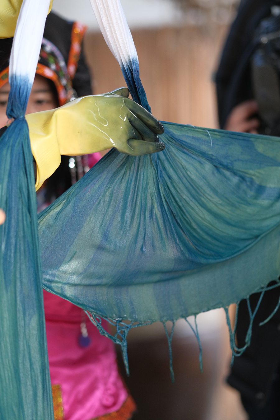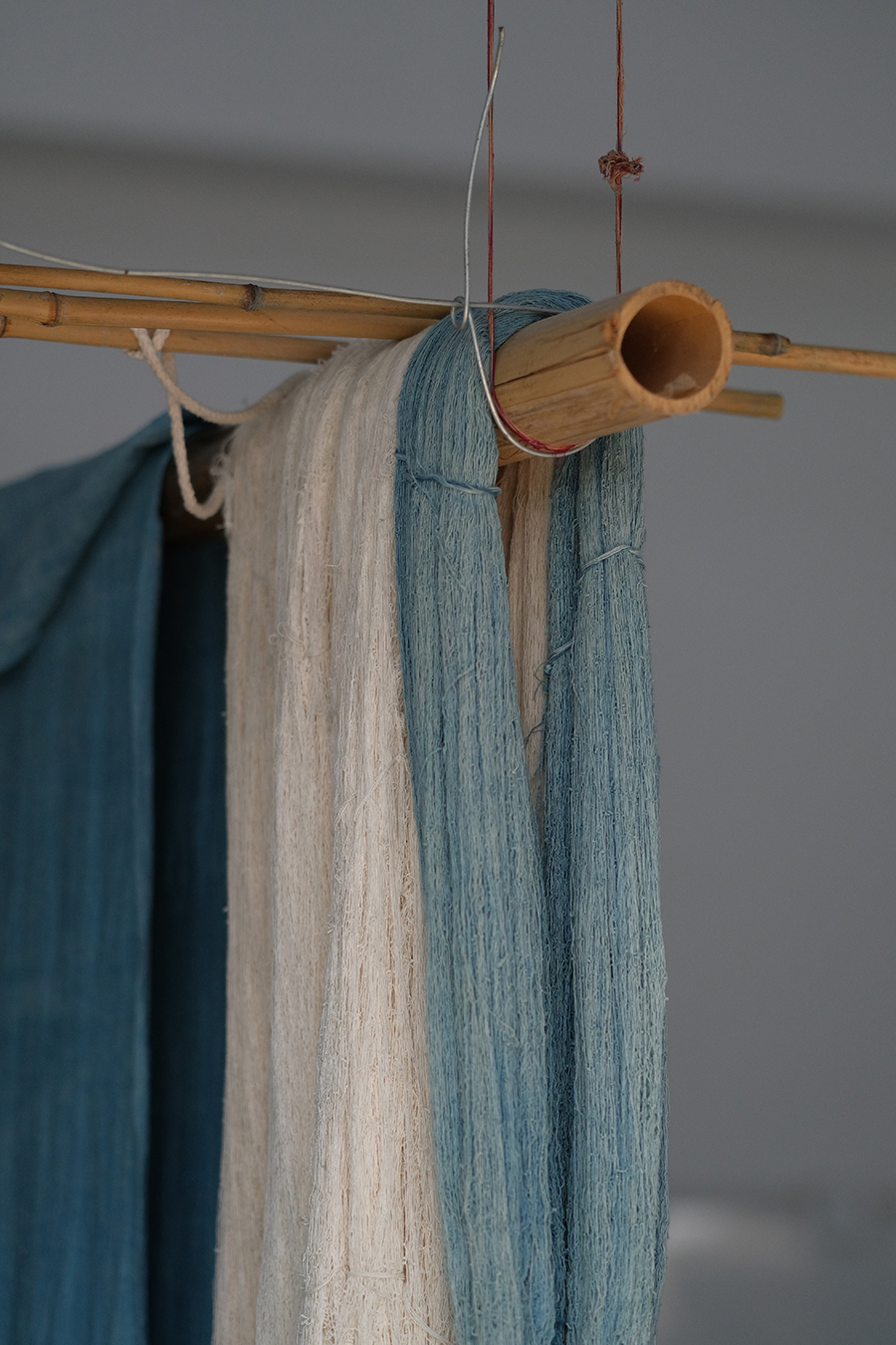 藍染製作後對染物進行晾曬