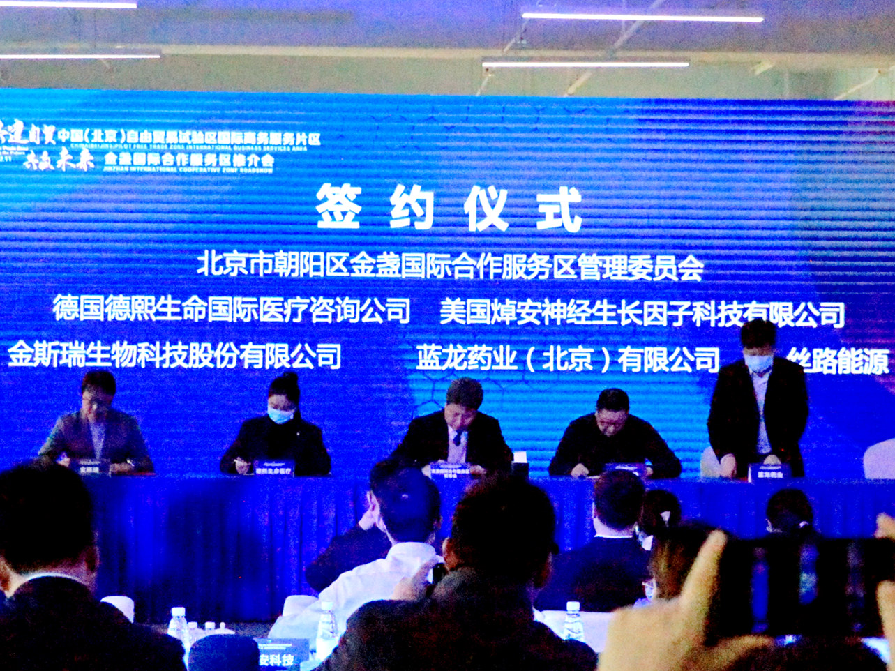 會上,金盞國際合作服務區管委會與中國外商投資企業協會生物科技創新委員會簽署了戰略合作協議,將合作建設北京朝陽國際生物谷總部基地。同時,與德熙國際醫療、焯安科技、金斯瑞、藍龍藥業、絲路能源、大悅城控股北京、香港置地、華潤置地、金茂產城、電子城高科簽署了入駐意向協議。
