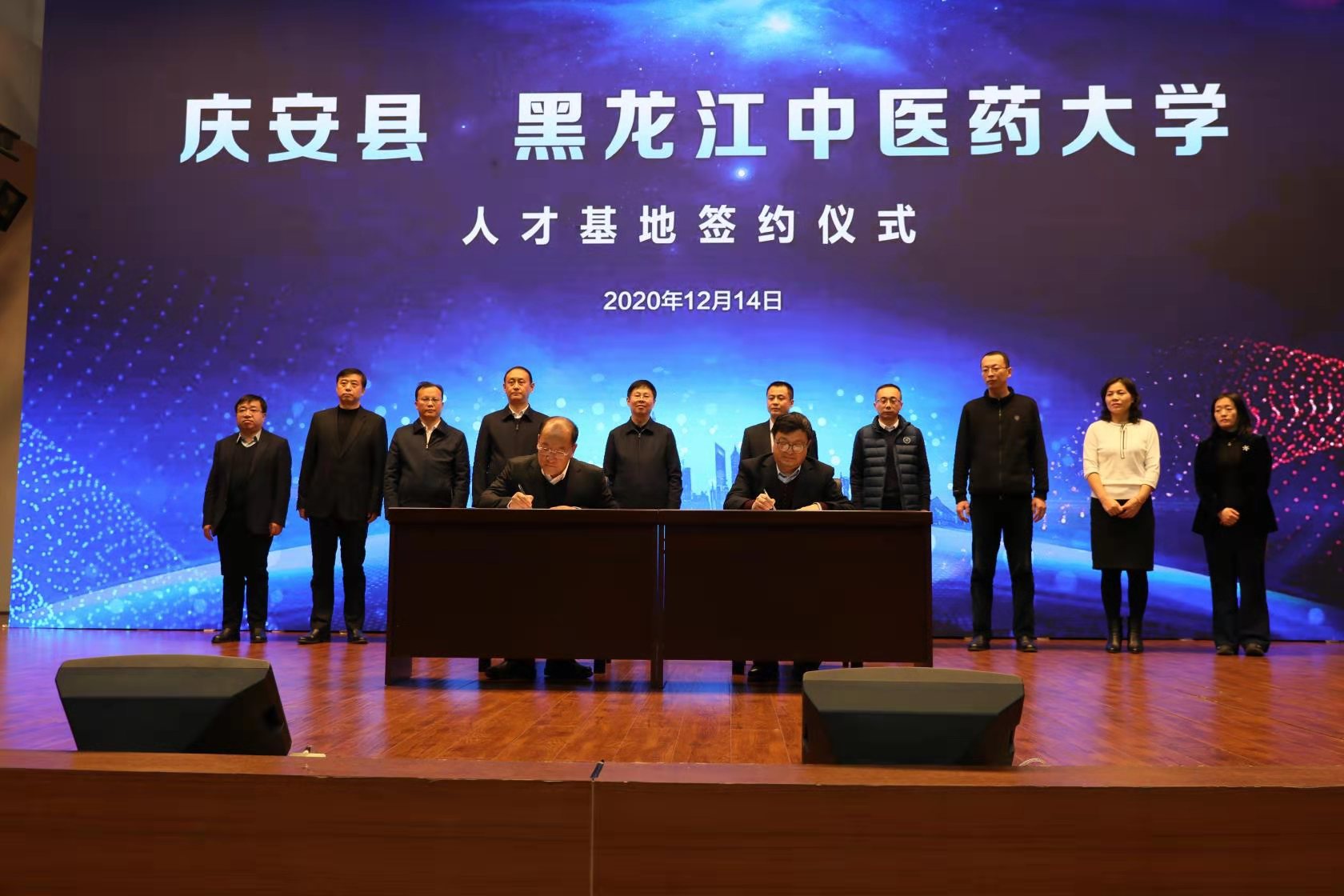 活動現場,楊全勝代表綏化市與黑龍江中醫藥大學黨委副書記陳亞平簽署共建人才工作站合作協議,于雷代表慶安縣與黑龍江中醫藥大學簽署人才基地建設合作協議。