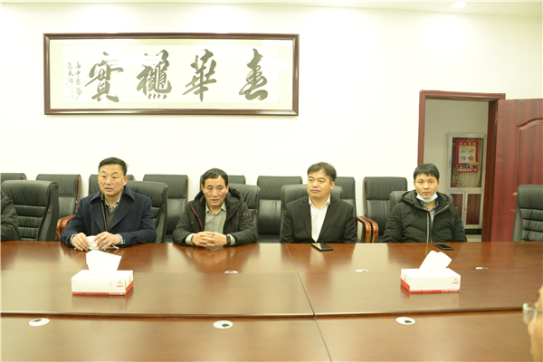 新疆河南工商企業聯合會(總商會)會長孫磊(左一)、執行會長馬運動(左二)、招商兼工會主席張占紅(右二)、常務副會長李保東(右一)
