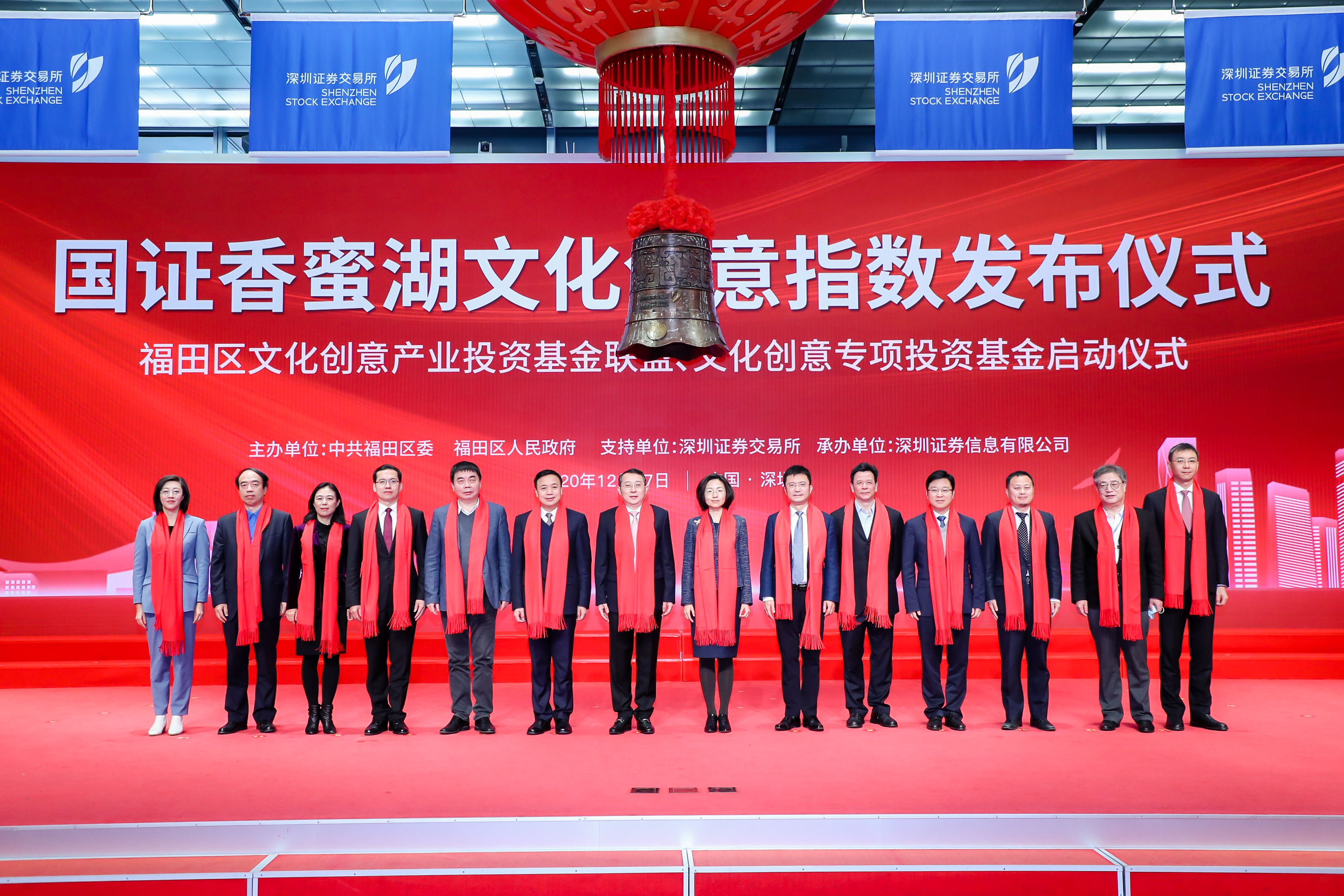 深圳市委常委、宣傳部長王強,深圳證券交易所黨委副書記、總經理沙雁,深圳證券交易所副總經理李輝,深圳市文化廣電旅遊體育局副局長錢強,深圳市金融局黨組成員、二級巡視員肖志家,福田區委書記鄭紅波,福田區委副書記、區長黃偉,福田區委常委、副區長舒毓民,福田區委常委、宣傳部長高大偉,福田區副區長孟漫及企業和行業協會代表一同見證全國首隻文化創意指數的成功發佈。