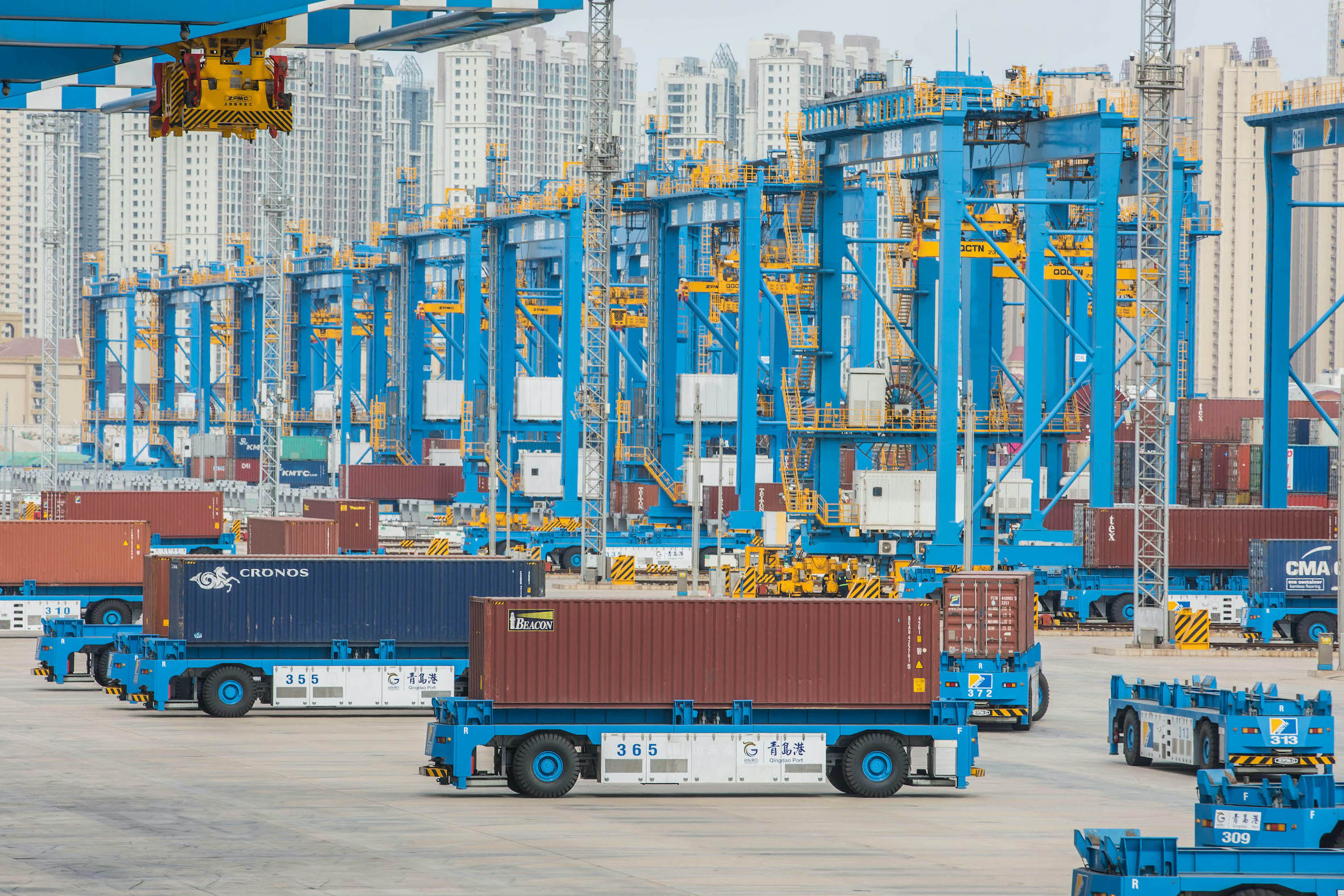 山東港口青島港全自動化集裝箱碼頭作業現場 山東港口集團供圖