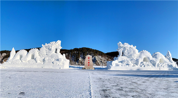 在北極村景區,極寒和極北在這裏完美結合,彰顯了冰雪藝術的無窮魅力,一幅幅冰雪畫卷完美呈現在遊人眼前,讓漠河的極地勝景成為遊人最嚮往的冬季旅遊目的地。(記者 張曉磊 通訊員 王景陽 顧吉仁/攝)