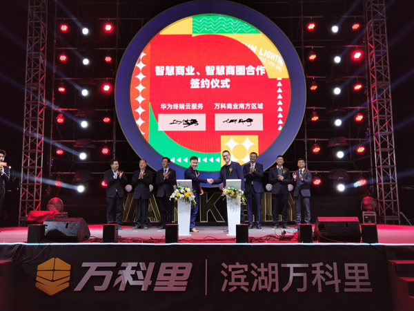 在開業儀式上,華為雲服務部與萬科南方區域商業事業部簽署了戰略合作協議,開啟華為、萬科合作共建智慧商圈的新版圖。據悉,這是華為與萬科在商業板塊的首次牽手,雙方將共同構建基於科技融合的5G智慧商圈,完善商業線上服務生態,推行全商圈5G信號部署,同時基於華為附近服務、華為河圖、商圈票券等板塊開展合作。