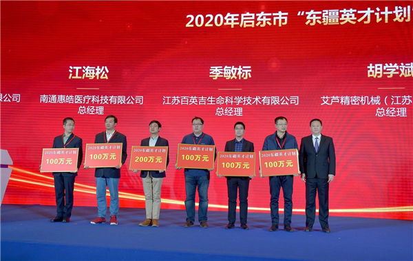 創新驅動本質上是人才驅動。啟東高度重視人才資源,持續深入實施「東疆英才計劃」、對接上海招才引智「333」工程、「百千萬人才集聚工程」等人才工程。今年上半年,啟東創新出台「人才新政4.0版」,內容涵蓋招才引智資助、人才培育、企業創新獎勵等各方面,有效破解了引人留才難題,充分激發了人才創新創業活力。今年以來,先後引進各類創新創業人才275名,其中國家重大人才工程入選者、「長江學者」等高端人才43名,新增入選省「雙創人才」15名。會上,啟東對2020年東疆英才計劃、傑出人才成就獎、高技能人才貢獻獎等獲得者進行了表彰。