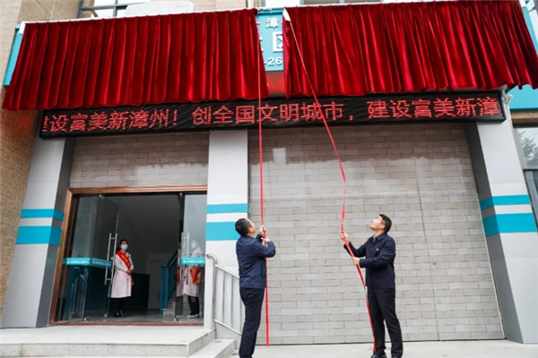 薌城區委書記胡棟良、區長石振棋共同為新橋街道社區衛生服務中心揭牌
