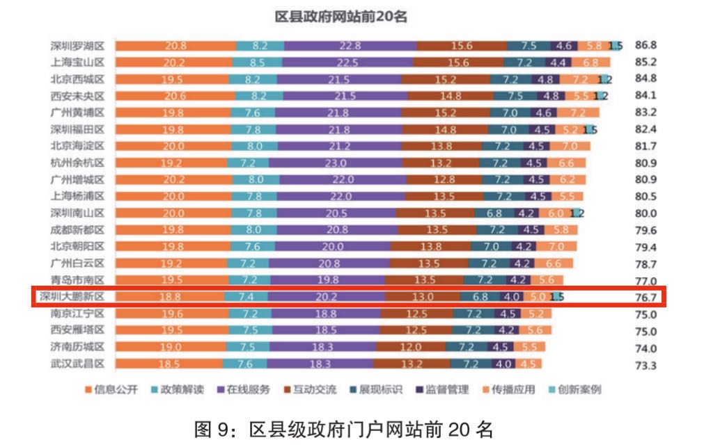 2020年12月18日,清華大學國家治理研究院、清華大學公共管理學院發佈《2020年中國政府網站績效評估報告》,深圳市大鵬新區躋身全國區縣政府門戶網站前20強。據悉,這是新區成立以來首次獲此殊榮。