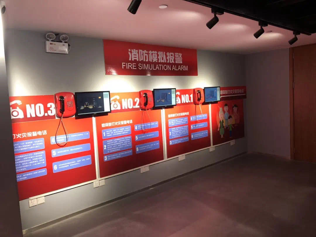 消防宣傳開放站設置消防安全疏散體驗廳、消防培訓區、消防安全模擬體驗區、高空逃生模擬體驗區、幻影成像劇場、野外安全模擬體驗區、消防安全綜合知識學習區七個功能分區,共包含火災大屏幕滅火體驗系統、電器火災演示與實驗系統、消防趣味知識測試系統、119報警體驗等十餘個體驗項目。