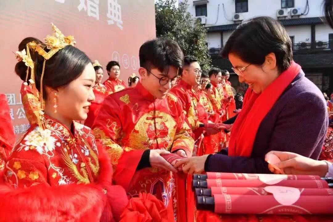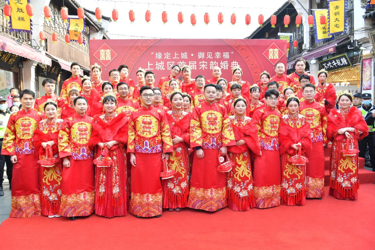 12月20日上午,「緣定上城 禦見幸福」首屆宋韻婚典集體婚禮在杭州南宋禦街成功舉辦。上城區委書記陳瑾,浙江省民政廳社會事務處處長丁小策,杭州市民政局副局長餘岱,杭州市總工會黨組成員、副主席張堅申等領導出席。