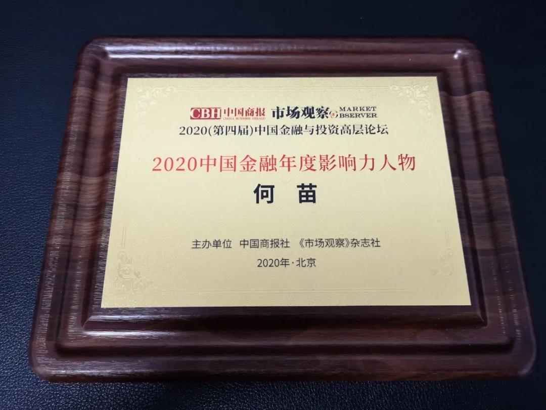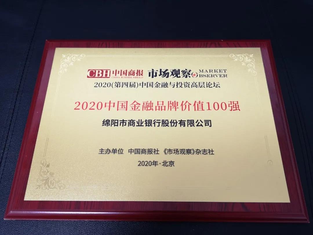 在北京召開的2020(第四屆)中國金融與投資高層論壇上,四川省綿陽市商業銀行被評為2020年中國金融品牌價值100強,董事長何苗獲評2020中國金融年度影響力人物。