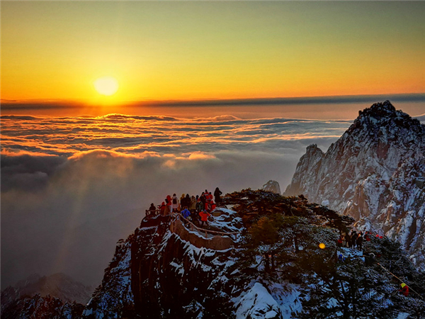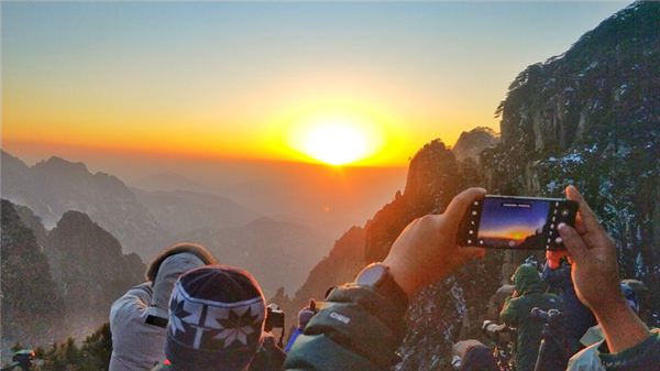 黃山距東海400公里,山勢高峻,峰林嵯峨,雲海常鋪,是觀日出、日落的絕好地方。冬季來到黃山,不論是獨自旅行還是好友同行,在一天的登高之後,在萬物蘇醒的清晨,靜靜等待太陽的東升西落,看火紅的光芒染紅半邊天,整個冬天仿佛都溫暖的起來,人生快哉也不過如此!