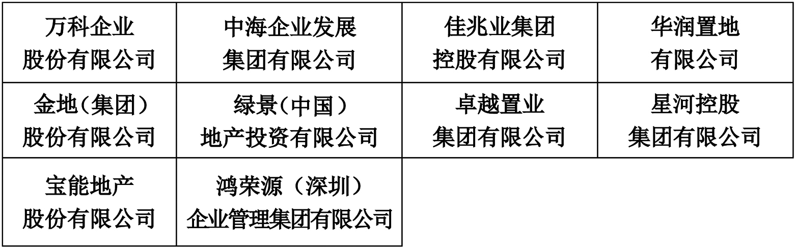 近日,由工、農、中、建四大國有銀行深圳市分行及中地會等機構聯合正式公佈「第十一屆(2020年度)深圳地產資信10強」名單,萬科、中海、佳兆業、金地、卓越、綠景、華潤、寶能、星河、鴻榮源等10家總部設在深圳的全國性代表房企上榜(排名不分先後)。