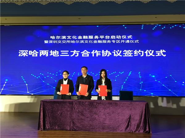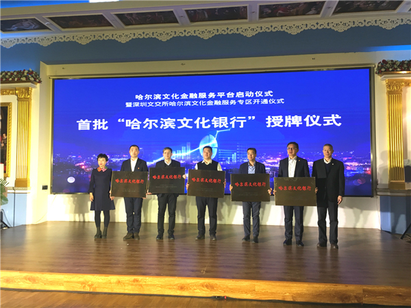 12月22日,由中共哈爾濱市委宣傳部、深圳文化產權交易所(深圳市文化金融服務中心)、哈爾濱市企業信用融資擔保服務中心、哈爾濱市文化產業協會、在哈部分商業銀行等深哈兩地文化金融管理部門和機構共同搭建的哈爾濱文化金融服務平台在哈爾濱市中央大街哈爾濱國際旅遊服務中心正式啟動,該平台將全方位為文化和旅遊企業提供金融服務,進一步助推深哈兩地文化金融合作。