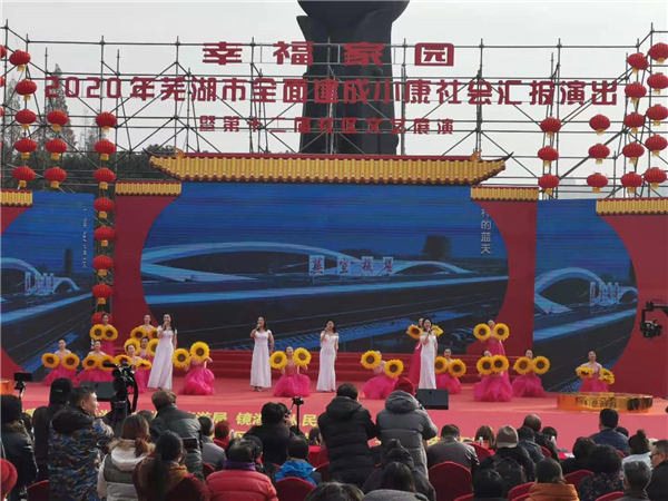 12月23日下午,「幸福家園」2020年蕪湖市全面建成小康社會匯報演出暨第十二屆社區文藝展演在鳩茲廣場隆重舉行。此次活動以音樂、舞蹈、語言類等節目為主要藝術表現形式,演出內容形式多樣,豐富多彩,完美地展現了蕪湖市全面建設小康社會取得的巨大成就。