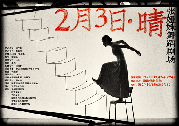 12月24、25日,張婭姝將於深圳保利劇院,首次推出由她擔任製作人及主演的個人舞蹈劇場《2月3日·晴》。2月3日是個晴天,也是立春的日子。寓意着新生,生機盎然,像春天一般萬物復甦。這部在2020年疫情期間創作的作品,承載的是舞者張婭姝對疫情後新生活的嚮往。