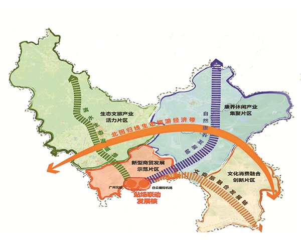 目前大灣區的交通網絡日益完善,花都以「空港+高鐵」的區位特色,以發展全域旅遊為契機,在大灣區北部生態文旅發展總體布局上,被定義為「花都為核,廣清為脈」,帶動六區(縣)文旅業的發展。