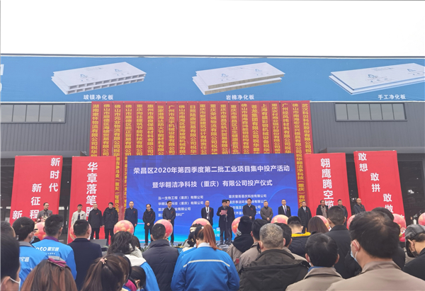 據介紹,投產項目中,重慶華翱潔淨科技有限公司於今年2月份通過「雲視頻」與榮昌簽約,並於今年底正式投產。從簽約到投產,華翱僅花費10個月的時間,實現了「當年簽約、當年建成、當年投產」的建設目標,也是華翱在全國區域內佈局的最快速投產速度。