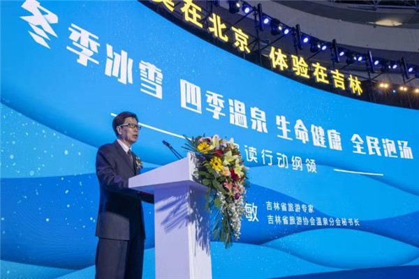 吉林省旅遊協會溫泉分會秘書長張敏宣讀「冬季冰雪,四季溫泉,生命健康,全民泡湯」行動綱領
