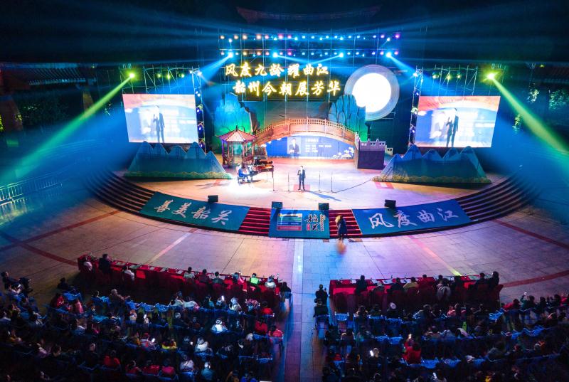 晚會現場,「風度美聲男團」的演唱家以及助演嘉賓們以一曲男聲合唱《草原上升起不落的太陽》拉開了晚會的序幕。現場及圍觀的市民群眾瞬間被雄渾而富有磁性的美聲吸引,紛紛駐足觀看。接着,女生獨唱《明月幾時有》柔美地響起,搭配上舞台上的明月、古橋、涼亭造型,唯美的意境讓全場觀眾聽得如痴如醉。