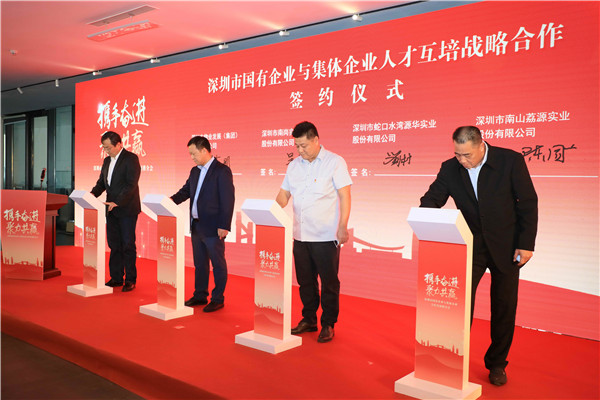 南山區股份合作公司聯誼會會長、國有企業代表分別作了發言,市國有企業相關負責人進行了路演宣講。深圳市眾冠股份有限公司等8家股份合作公司與深物業等市屬國企簽訂了合作意向,確定了人才互培對接方案等。(記者 王靜抒)