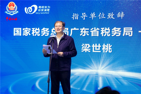 圖為國家稅務總局廣東省稅務局一級巡視員梁世桃為活動致辭。