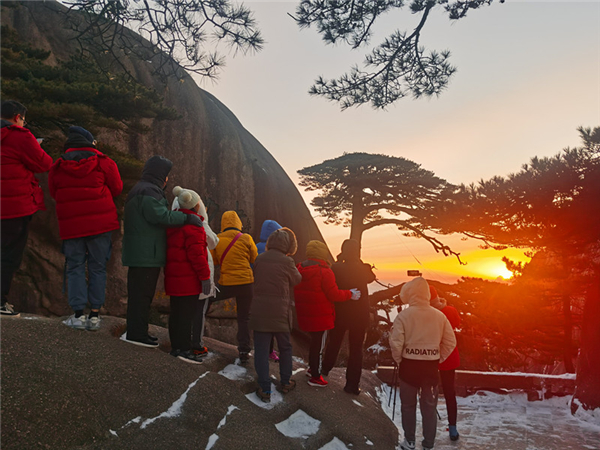 從12月29日開始,寒潮對黃山風景區產生影響,黃山景區氣象部門先後發佈了寒潮黃色預警、道路結冰黃色預警和暴雪藍色預警。29日下午15點開始,景區迎來降雪,此次降雪量5.1毫米,平均雪深4釐米,至夜間23點降雪過程結束。期間,黃山風景區部分區域風力達到八級。30日白天,黃山風景區雖已雪後放晴,但寒潮低溫影響持續,氣溫最低達到零下18.3度。