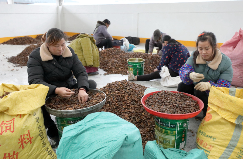 近日,人們在廣西柳州市三江侗族自治縣斗江鎮一家茶油精深加工廠選油茶籽,準備用於榨油。近年來,三江深入推進油茶品改工程,大力推廣良種油茶種植,加強油茶低產林改造,提高油茶質量效益,優化油茶產業結構,實現了油茶產業質量效益雙提升。