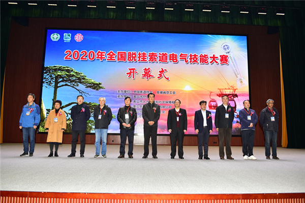 2020年全國脫掛索道電氣技能大賽暨“徽州百工”第五屆索道行業技能大賽日前在黃山市舉行。中國索道協會理事長王樹鶴蒞臨開幕式並致辭,安徽省總工會黨組成員、副主席許建清宣佈開賽,黃山市政協副主席、黃山市總工會主席徐玉寶主持開幕式,黃山風景區黨工委副書記、紀工委書記徐金武和黃山風景區黨工委委員、黃山旅遊發展股份有限公司黨委書記董事長章德輝分別致辭。