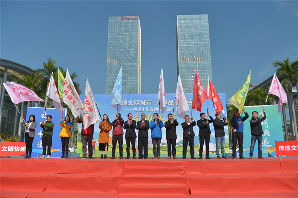 現場還舉行了文明火炬傳遞儀式和授旗儀式,啟動了「贈人玫瑰,手有餘香」線上文明傳「遞」活動,即日起,市民收到快遞外賣可掃指定二維碼,根據提示參加活動,有機會贏取禮品。