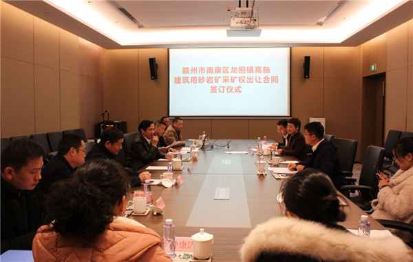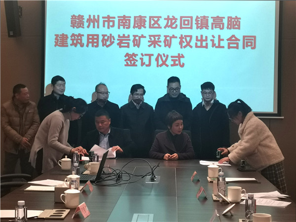 當日下午,在贛州市南康區委副書記、區長、贛州國際陸港黨工委書記何善錦,贛州市南康區委常委、常務副區長李松柏的共同見證下,贛州市自然資源局南康分局相關負責人與贛州星州潤達集團有限公司簽約代表就南康區龍回鎮高腦建築用砂岩礦採礦權簽訂出讓合同。