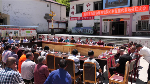 2018年,響岩鎮同心村利用中物院定點扶貧資金300萬元,對上爭取東西部扶貧協作等各項目建設政策資金,再加上村社集體共同出資,合力打造千畝果園1個,栽植上千畝木瓜、李子、桃子等水果,同時利用財政涉農統籌整合資金建設了村集體標準化中蜂產業園1個,毛葉山桐子基地200畝;2018年開始,共建成東西部扶貧協作生豬代養場2座,年出欄2500頭,每年可新增村集體經濟收入40萬元;預計2021年,全年兩欄5000頭生豬出欄,同心村集體收入將達到50萬元,人均收入800元。其生豬代養場由村集體經濟組織(集體經濟股份合作聯合社)與正大公司簽訂生豬代養合作協議,嚴格按照正大公司提供的規範化生豬代養場設計圖紙、工程量清單及技術規範等有關要求,由村集體經濟組織自行組織施工隊伍建設,資產全部歸同心村村集體經濟組織所有(包括合併的原青林村在內)。形成收益後,村集體經濟組織佔50%,村集體經濟組織成員佔50%,按照集體經濟組織章程進行分配。生豬代養場項目的建設,有效解決了響岩鎮多年來養殖與環境污染的矛盾、緩解防疫壓力;同時,養殖場產生的糞污通過處理後,為千畝果園內的木瓜、桃樹、李樹和中藥材等提供了有機肥,形成養殖場與果園科學種養結合、配套發展,為全鎮鎮生態循環農業打下堅實基礎。2016年,貧困村退出實現農村居民人均可支配10246元;2019年,實現農村居民人均可支配17425元,較2014年的3895元增長347.4%;2020年5月出欄第一批生豬,為同心村集體增收55063元,其中貧困戶人均分紅200餘元。