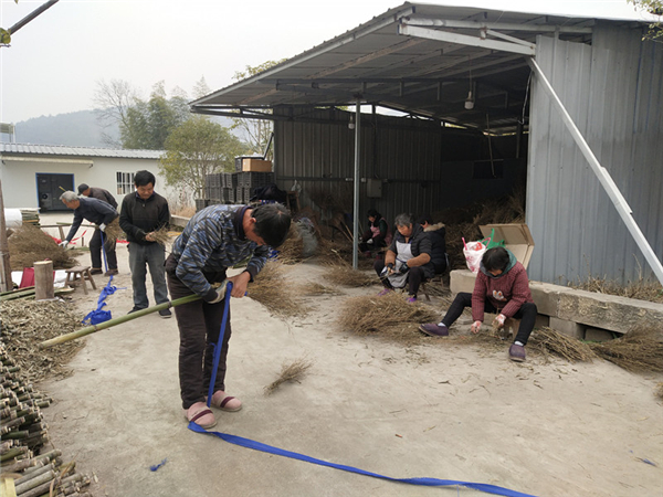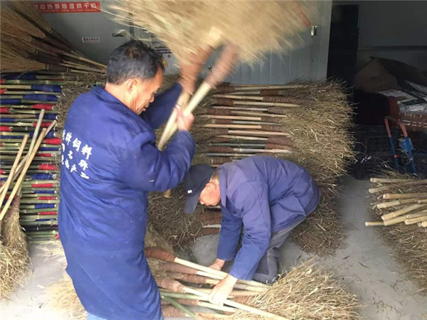 “昨天收購商已來我公司調運掃帚2300把,這幾天還要再加工1700把,一天要聘9個村民來加工製作掃帚,趕在下個月初把第二批貨供出去。”1月3日,安徽黃山市鈺農食品有限公司負責人介紹,目前該公司位於休寧齊雲山鎮環居村廠房內,正組織村民加緊製作掃帚。