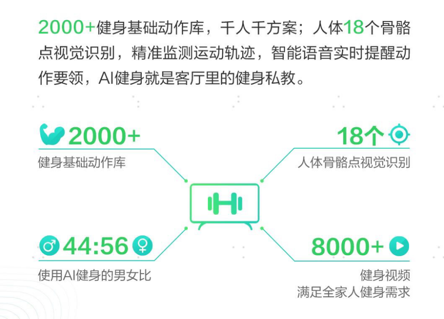 據悉,聚好看是行業中首家獲評、也是唯一 一家連續兩次獲評「中國獨角獸企業」的科技公司。 聚好看最新發布的白皮書顯示,2020全年,每100個擁有社交電視的潮人,就有30個是健身達人,他們中50%的用戶根據自身的身高、體重、健身目標、運動強度,定製專屬的AI健身計劃。AI健身幫健身達人消耗1120萬卡路里,相當於秋天的28000杯奶茶。