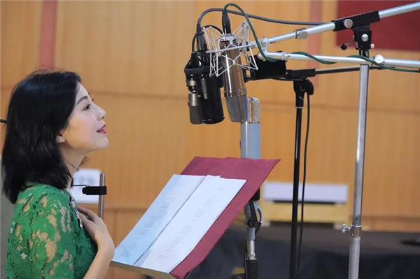 女低音歌手佳明沉浸在歌曲中
