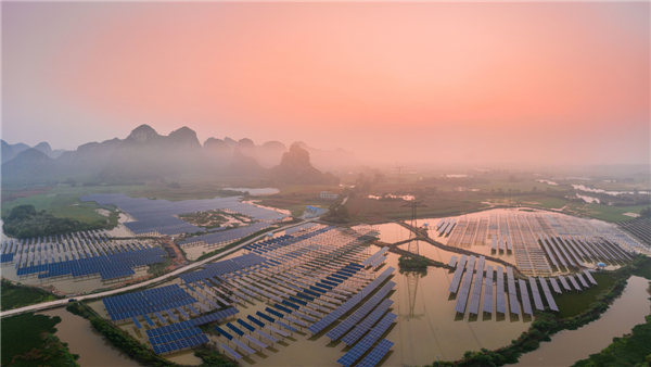 上林扶貧光伏電站晨曦 韋偉群攝