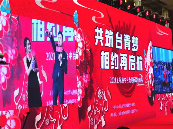 與此同時,全國台企聯常務副會長林子凱,上海市台協副會長盧壯智以及市台協青年部代表和在台親屬近400人在台中臻愛花園飯店與上海會場視訊連線,隔空對話,共敘親情,喜迎新年。