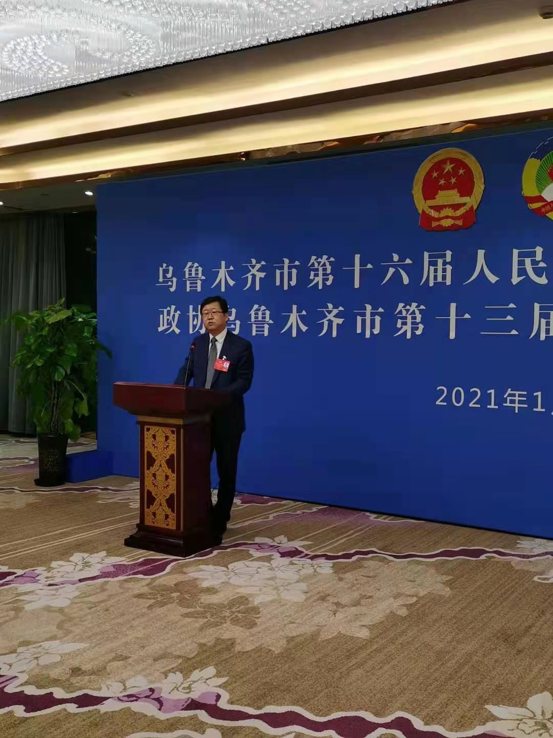 1月11日下午,在烏魯木齊市政協十三屆六次會議集中採訪時,烏魯木齊市南山景區管委會副主任江啟新現場接受記者提問。