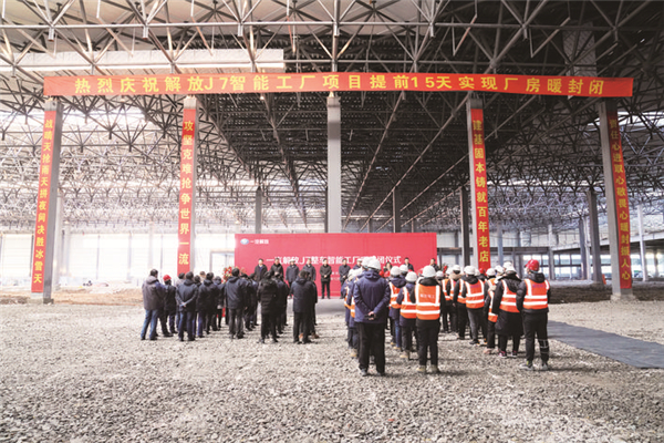 汽開區高效服務助解放J7智能工廠項目提前15天實現廠房暖封閉。