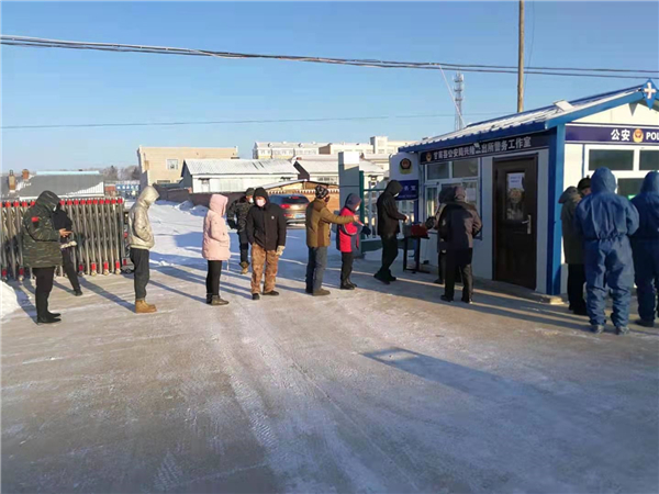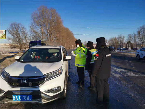 「您好,請出示行程碼,測量體溫。」1月14日,在黑蒙交界卡口,黑龍江省甘南縣公安局執勤人員正對過往車輛及人員進行掃碼、測溫等工作。據介紹,為有效阻斷病毒傳播,守好「第一道防線」,甘南縣公安局在通往縣域外主要幹道設置了9個卡口,出動警力110餘人進行全天候值守,嚴格排查過往人員車輛。