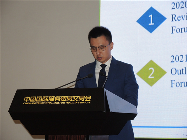 中國電子學會副秘書長梁靚介紹2020年服貿會數字貿易高峰論壇重要成果及2021年服貿會數字貿易高峰論壇籌辦情況