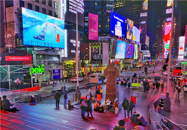 據記者了解,《千年運河》每天6至24點之間每小時播出一次,七天共計播出上百次。當前播放的這塊大屏幕離地面更近,國內新聞節目每次說到紐約時代廣場時,鏡頭都會從此掃過去,都會看到這塊屏,該大屏歷來被稱為「吸引全球目光」的最佳窗口之一,播出的信息多次引起BBC、路透社及美國傳媒巨頭的關注,也吸引了南來北往人群的駐足目光。(記者 張宇)