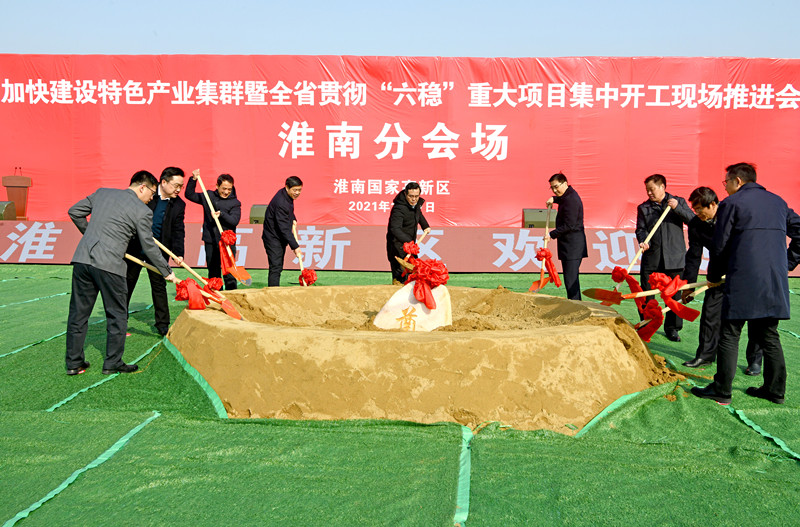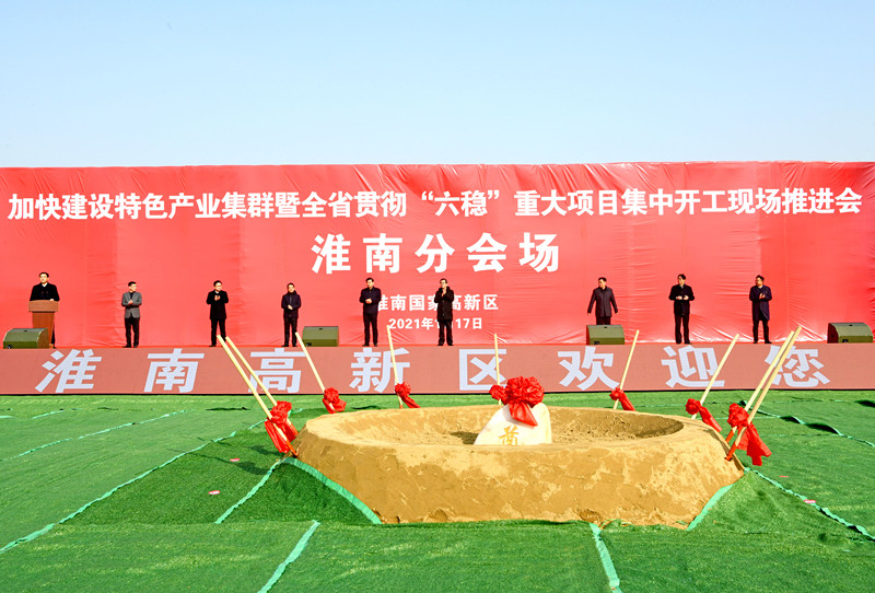 1月17日,加快建設特色產業集群暨安徽省貫徹“六穩”重大项目集中開工現場推進會淮南分會場在淮南市高新區產業園二期项目區舉行。據悉,淮南市新開工億元以上项目19個,總投資77.36億元,年度計划投資26.57億元,新開工项目涵蓋戰略性新興產業、傳統產業升級改造、農業產業化、現代服務業、文化旅遊和基礎設施建設等多個領域,為“十四五”開好頭、起好步打下基礎,掀起新一輪项目建設熱潮。