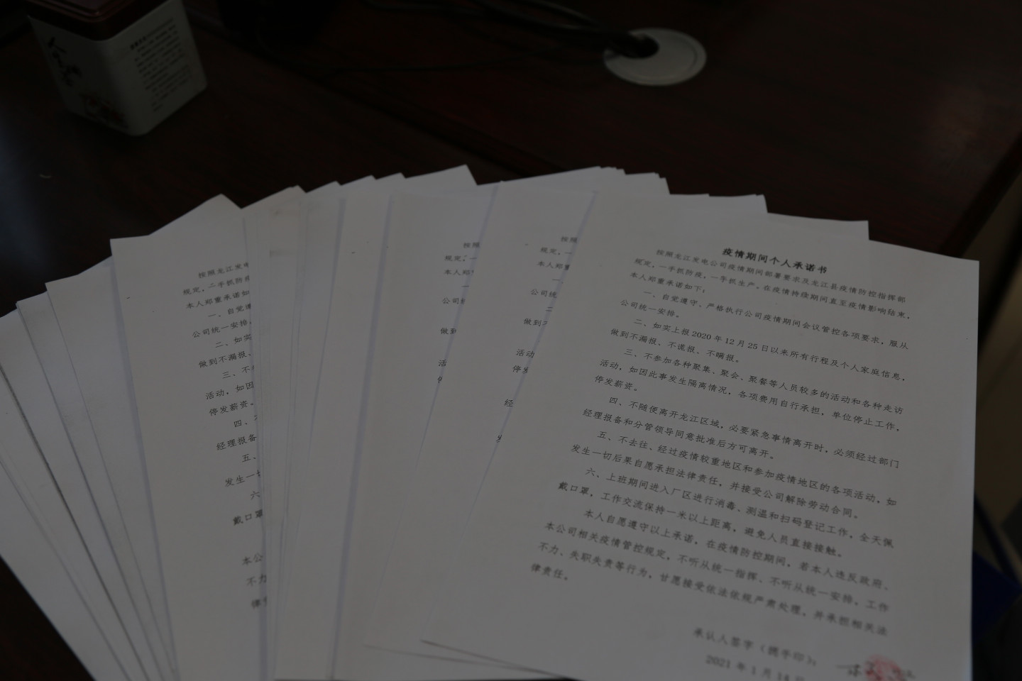在國能龍江生物發電有限公司,一台台裝載車正在將打包好的秸稈輸送到鍋爐燃燒,秸稈生物發電工作正在有序進行中。據國能龍江生物發電有限公司負責人介紹:「我們公司不僅嚴格按照疫情防控的相關規定執行,員工們還都簽署了個人承諾書,承諾疫情防控期間不聚集、不聚餐,如實上報個人行程信息等等,確保管住人,生產能夠有序進行。」
